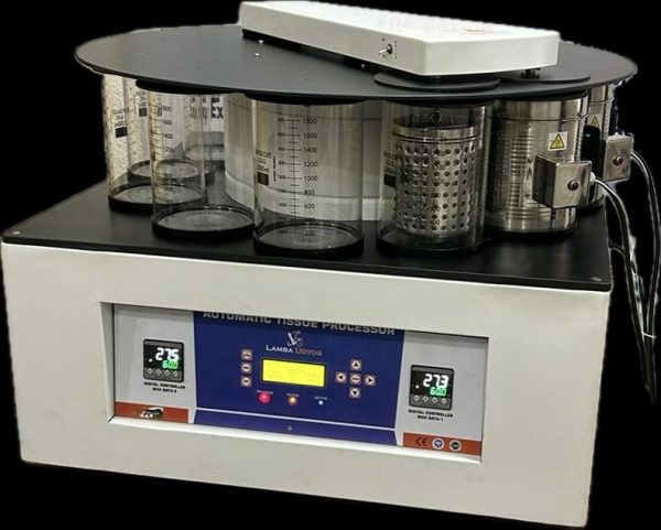 LAMBA UDYOG Automatic Tissue Processor is designed to prevent a solution to the rapid processing of tissue in Histology Laboratories . MPTP removes all the water from a tissue sample and replace it with paraffin wax with optimum speed to curtail damage to the tissues caused by dehydration and shrinkage.